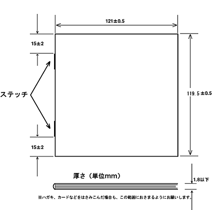 | 外観 | 印刷不良、汚れ、キズ、シワなどがないこと。 |